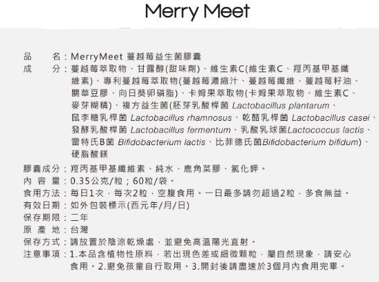 ...保健食品 就是「Merry Meet蔓越莓益生菌膠囊」~~~ 長期都有...