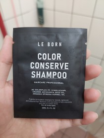 LE BORN 的試用組在2023年時@cosme有提供伴手禮 但裡面就是少了這包護色洗髮露 後來再一次拿到這個髮品試用組時 裡面就有護色洗髮露了 護色洗髮露主打雙重精油 撫平與修護毛鱗片 有效鎖住色彩 維持髮根強韌 避免乾枯毛躁質地是半透明有點稠的髮乳 香味有著很淡的木質香