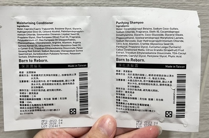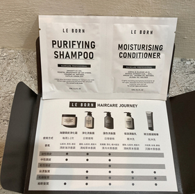 這是來@cosme 2023伴手禮 「LE BORN」全系列商品無添加刺激性防腐劑、酒精與甲醛可塑劑刺激性防腐劑酒精與甲醛可塑劑 5款髮品中皆有其香氣,唯獨試用包裡缺少了護色洗髮露唯獨試用包裡缺少了護色洗髮露 目前用了淨化洗髮露,保濕潤髮乳以及賦活重建精華 淨化洗髮露除了乾性頭皮,適用族群較廣