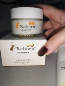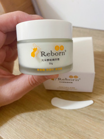 Reborn 蕊朋「光采酵能精萃霜」的使用心得這次試用是是台灣品牌要支持一下!Reborn是再生的意思,意味著使用此品牌的產品肌膚好似重生一樣,回歸嬰兒時期的柔嫩肌膚般。 首先說商品的包裝,瓶身設計給人比較老式不新穎的感覺,紙盒建議不要用女性曲線那個圖案,有點曲扭了產品本體,建議應該重新設計外包裝。無